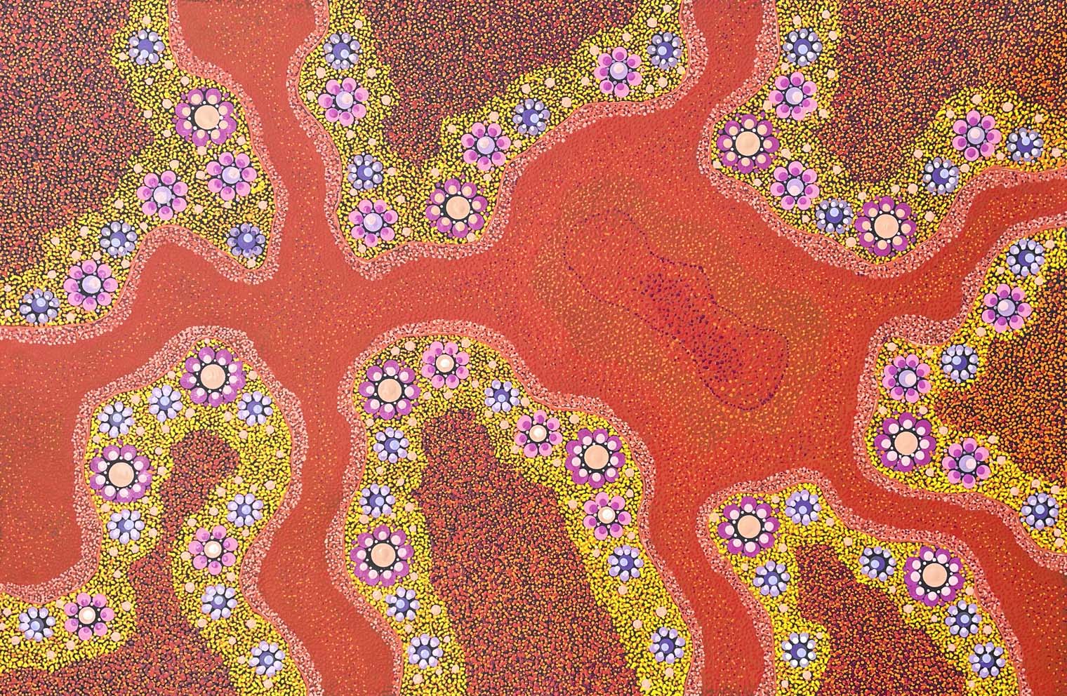 The art of the Central Desert has been the most influential in bringing Aboriginal artworks to a worldwide audience. Its use of repetitive patterns and mesmerising rhythms that are based on the forms of landscape and tied to Creation stories seems to speak to all universal values.