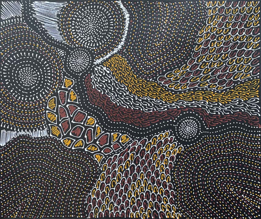 |  Lily Nungarrayi Hargraves | Women’s DreamingJap 000630 | $750 | acrylic on canvas | 90 x 92 cm