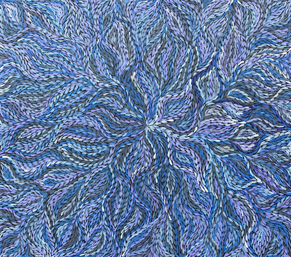 The theme of Bush Medicine Leaves was developed in paintings by Gloria Petyarre (1945-2021) and became a powerful part of her painting imagery during the last 20 years of her career.