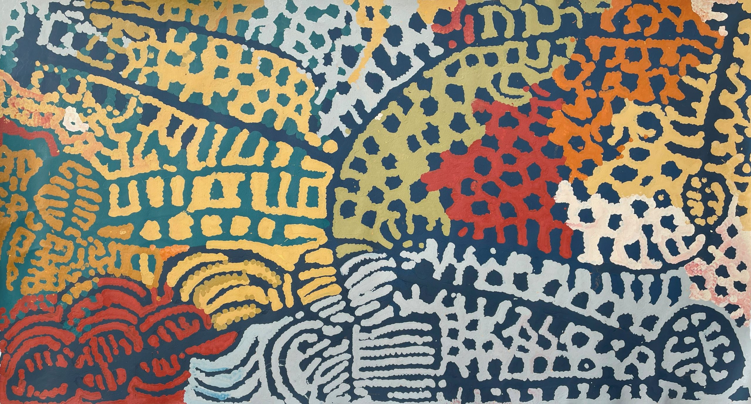|  Lorna Napurrula Fencer | Yapa Jukurrpa Story – Digging for YamsJap 001285 | $8,500 | acrylic on canvas | 246 x 140 cm