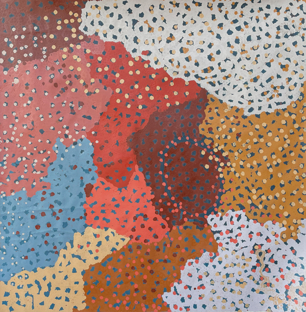 |  Lorna Napurrula Fencer | Parla Wapirti – Yam FlowerJap 001575 | $4,800 | acrylic on canvas | 124 x 124 cm