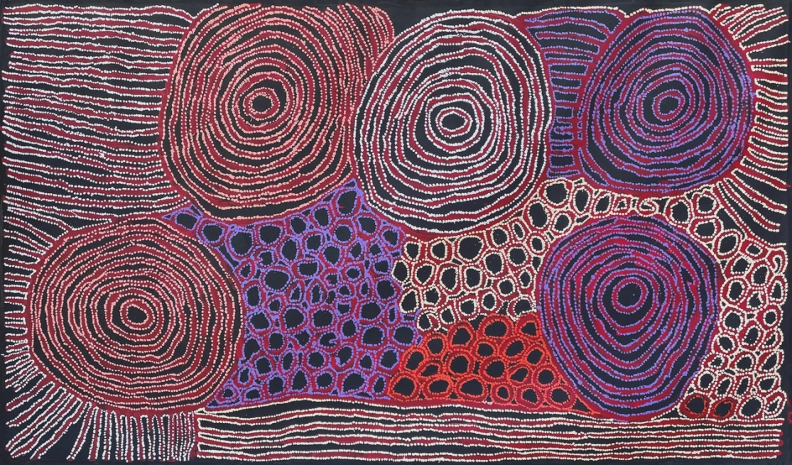 |  Judy Watson Napangardi | Mina Mina JukurrpaJap 023235 | acrylic on linen | 150 x 90 cm