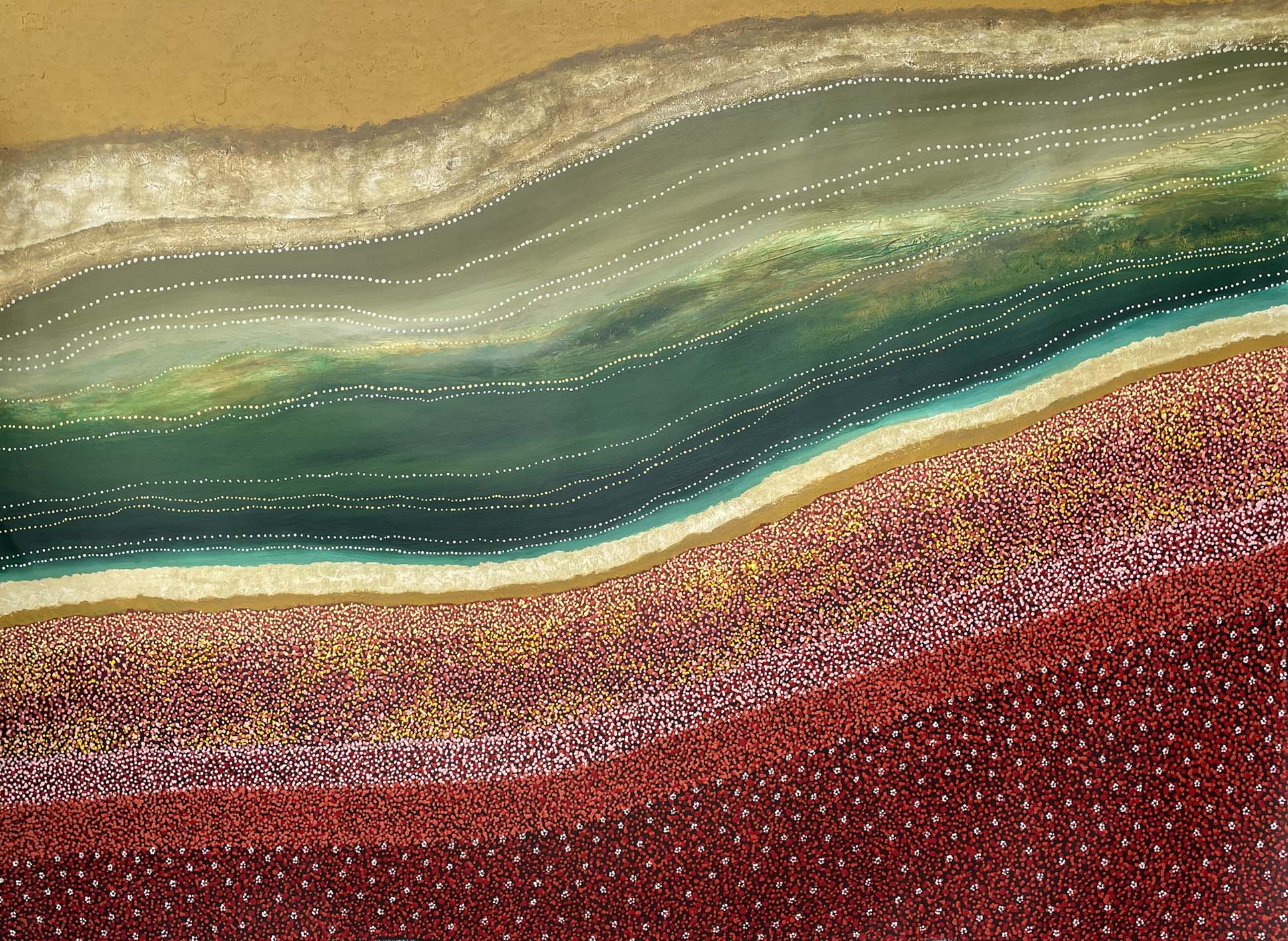 |  Sonya Edney | Gascoyne Waterhole and WildflowersJap 024020 | acrylic on canvas | 196 x 145 cm